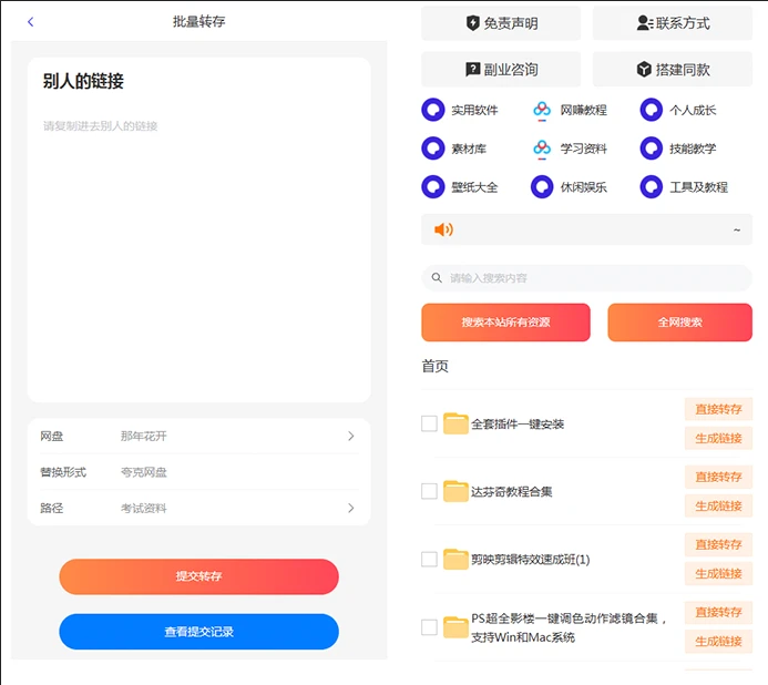 团队成员都可以拥有一套批量转存工具,和http://m.mulupan.cn/ 这样的一个网站。