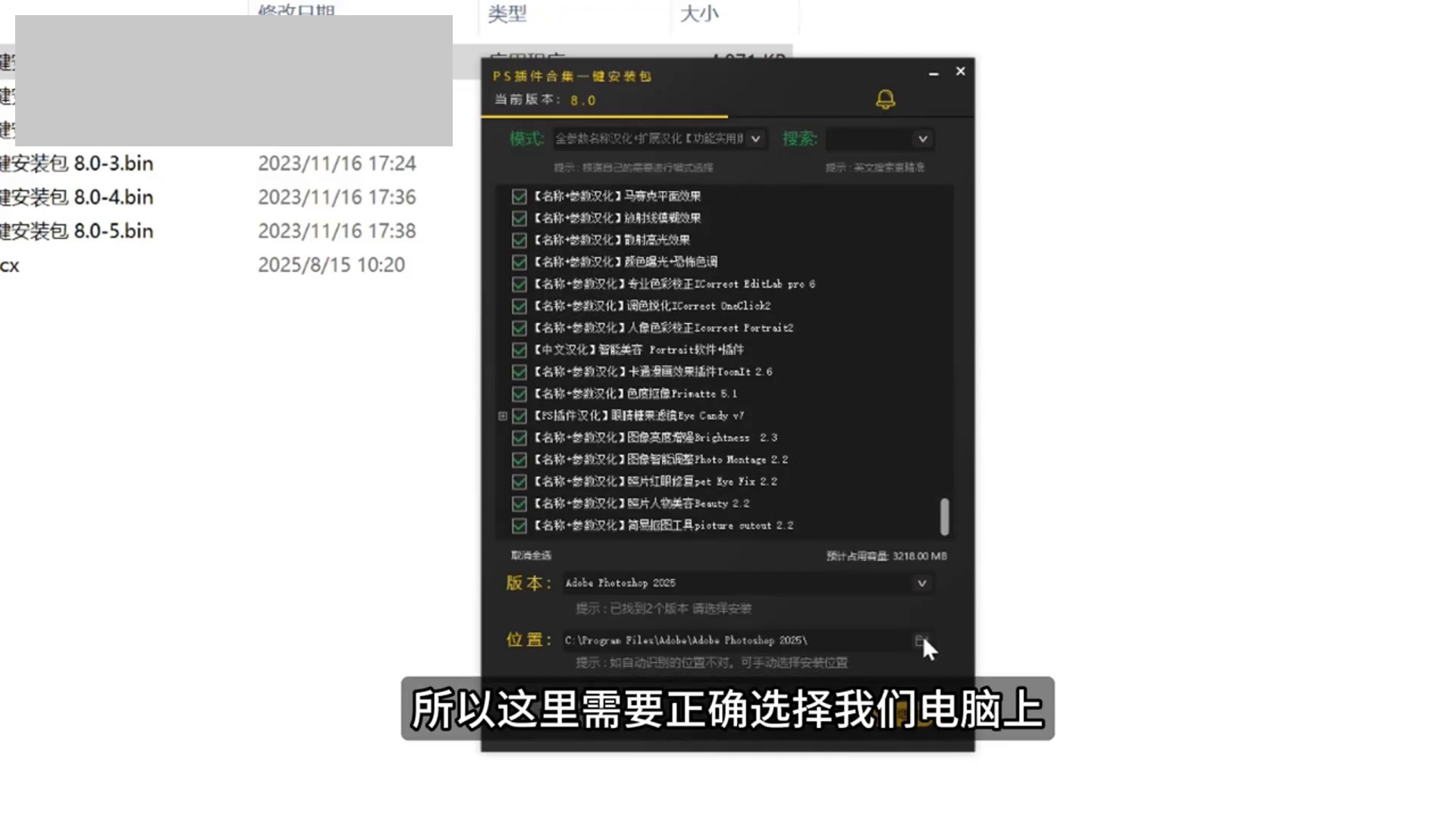 关键步骤:在“安装路径”处,必须正确选择你电脑上 Photoshop软件的安装目录(例如