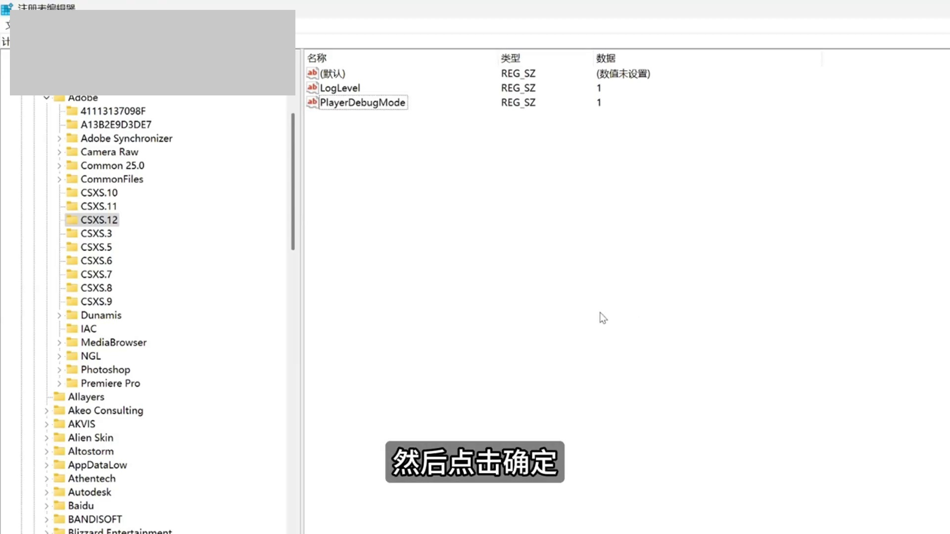 PlayerDebugMode。双击该值,将“数值数据”设置为 1,点击确定。